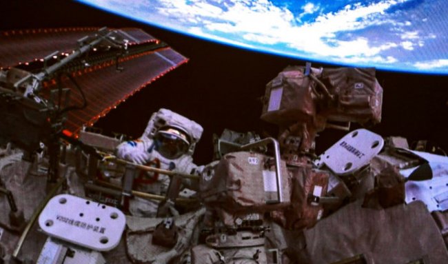 На минувшей неделе два китайских астронавта из экипажа космической станции «Тяньгун» вышли в открытый космос для создания защиты от возможного столкновения с фрагментами российского спутника «Ресурс-П1» (масса спутника 6570 кг, размеры 7,93 х 2,72 м).
