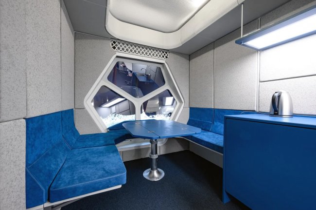 Из плюсов проекта стоит отметить наличие системы «умного» освещения, которая помогает поддерживать циркадные ритмы, а также контроллера состояния воздуха и температуры. Чтобы не нарушать целостность контейнера, в нем не стали делать окна, заменив их мониторами с выводом картинки с внешних камер. Лунные пейзажи не самые живописные — но других там все равно нет, а людям нравится видеть, что происходит «за окном».
