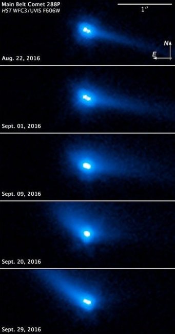 Body 288P был обнаружен телескопом Хаббл еще в 2011 году. Он тогда еще был активен, но в виду большой удаленности плохо различим. Все изменилось в сентябре 2016 года, когда астероид максимально приблизился к Солнцу, будучи на удалении от Земли в 200 млн. км.