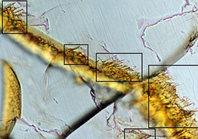 В результате нового исследования внутри метеорита были обнаружены пустоты овальной формы, заполненные глиной с высоким содержанием железа. По форме эти пустоты напоминают бактерии, однако ученые заявляют о небиологическом материале внутри них. Скорее, это результат геологических процессов, при которых вода просачивалась сквозь камень. Аналогичные образцы глины были обнаружены Curiosity на поверхности Марса.