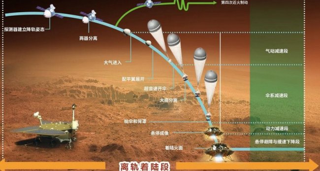 Чжужун доставлен космическим аппаратом Тяньвэнь-1. Он еще в феврале прибыл на орбиту Марса и в течение нескольких месяцев исследовал планету из космоса. Это было необходимо в том числе для определения оптимального места спуска марсохода.