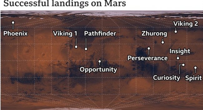 Сейчас, помимо Чжужун, на Марсе находятся два американских планетохода в рабочем состоянии — Кьюриосити и доставленный в феврале Персеверанс. В следующем году планируется запуск еще одного аналогичного аппарата в рамках российско-европейской программы «ЭкзоМарс-2022».