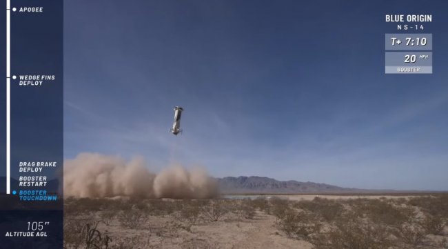 В ходе испытания были выполнены запуск, отделение ракеты-носителя на высоте около 40 километров, ее вертикальная посадка, а также возвращение и приземление на парашюте пассажирской капсулы. Именно по такой схеме будут проходить регулярные полеты Blue Origin для космических туристов, правда, пока неизвестно, когда они начнутся.