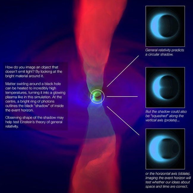 Отдельной задачей было измерение массы черной дыры — важное с точки зрения соответствия предсказаний общей теории относительности и наблюдаемых явлений. Астроном Хейно Фальке так объясняет механизм: «Будучи погруженной в яркую область, такую как диск из светящегося газа, черная дыра ожидаемо создаст темную область, напоминающую тень — это предсказывает общая теория относительности Эйнштейна, но раньше мы этого не наблюдали. Эта тень, следствие гравитационного изгиба и захвата света горизонтом событий, многое раскрывает о природе этих захватывающих объектов и позволила нам измерить огромную массу черной дыры M87».