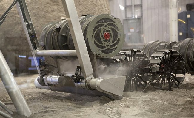 Для этого был создан робот RASSOR, вес которого примерно в половину меньше, чем ранее разработанные аналоги с похожими характеристиками. Чтобы копать, RASSOR использует два полых барабана, усеянных мелкими зубцами. Когда робот движется вперед, зубцы создают узкую щелевую траншею, а не глубокую дыру. Ключевая особенность RASSOR заключается в том, что барабаны вращаются в разных направлениях – это позволяет ему работать при низкой гравитации. Из полученной почвы добывается вода, которую можно не только пить, но и использовать для производства ракетного топлива.