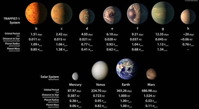 Согласно пресс-релизу NASA, карлик обладает сравнительно низкой температурой, позволяющей планетам с жидкой водой находиться на более близких к звезде орбитам, чем это возможно в нашей Солнечной Системе. Так, все семь новых экзопланет находятся ближе к их родной звезде, чем Меркурий к Солнцу.