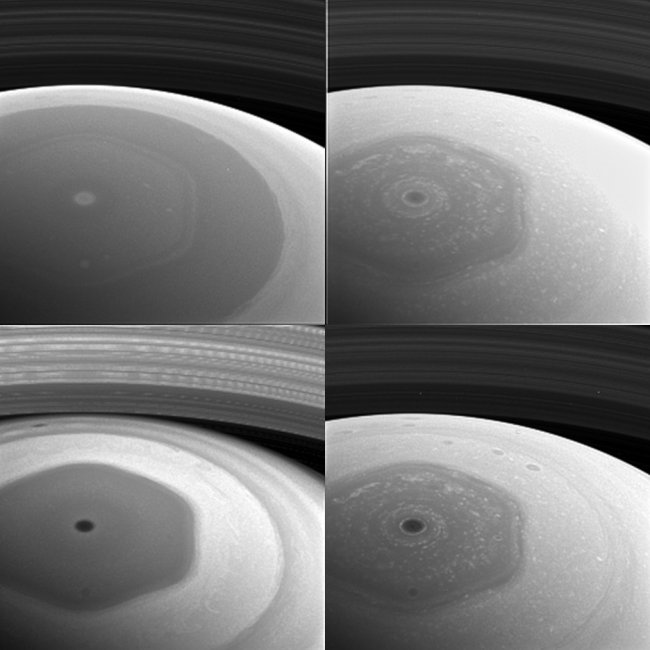 Этот этап завершится разрушением "Кассини" в атмосфере планеты-гиганта, которую он изучал в течение 12 лет. На новых фото хорошо виден знаменитый шестиугольный шторм в северном полушарии Сатурна.