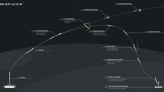 Вскоре после запуска первая ступень ракеты Falcon 9 самостоятельно приземлилаь на автономный корабль у побережья Флориды в Атлантическом океане. Предыдущие попытки осуществить такую вертикальную посадку были неудачными.