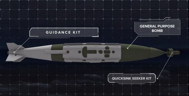 Инженеры ВВС США пошли по пути своих российских визави, оснастив бомбу типа JDAM планирующим модулем, в результате чего на свет появилась высокоточная противокорабельная бомба Quicksink ценой всего $300 000.