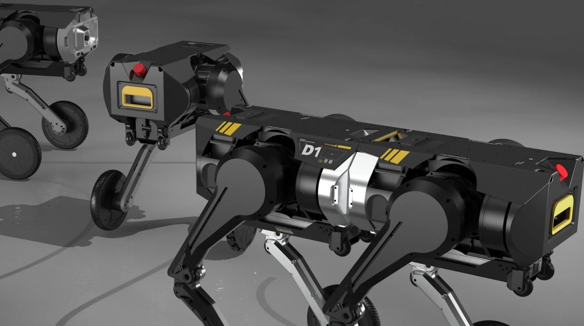 Опираясь на четыре ноги, D1 не только преодолевает сложные участки, но может переносить грузы весом до 100 кг, в том числе, взрослого человека. Ему не страшны падения — он уверенно встает на ноги и восстанавливает равновесие, а также передвигается по водной поверхности.