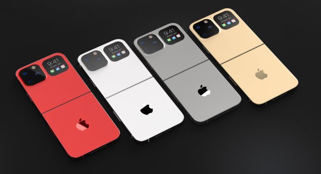 Концепт назвали iPhone Flip. Аппарат на изображениях представлен в четырёх расцветках и в форм-факторе раскладушки. Он похож на Samsung Galaxy Z Flip и Motorola RAZR. У него установлен основной экран с вырезом для датчиков Face ID, кроме этого есть подэкранный сканер отпечатков пальцев. Кстати, такой набор приписывают iPhone 13 (aka iPhone 12S).