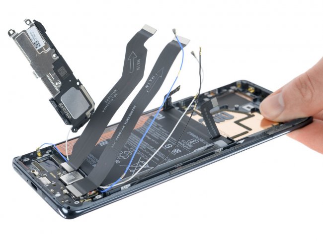 Во-вторых, аппарат имеет закруглённый дисплей. Из-за этого его очень сложно отсоединить от панели не повредив. Например, дисплей придётся снимать если что-то случится со сканером отпечатков пальцев. Также специалисты iFixit отметили не очень стойкий клей. В общем лучше смартфон не ломать и носить его всегда в чехле.