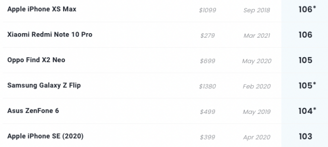 Аппарат разместился в общем рейтинге на 72 месте (уровень iPhone XS Max). Если же брать только устройства в ценовом сегменте $200-400, то это 3 место после Pixel 4a и OnePlus Nord.