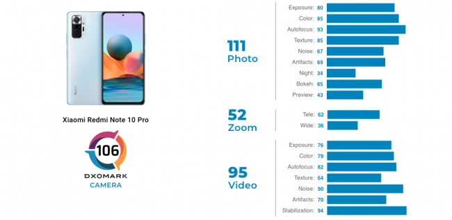 Специалисты французской лаборатории DxOMark, наконец-то, добрались до камеры недорого смартфона Redmi Note 10 Pro.