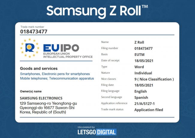 По информации издания LetsGoDigital, компания зарегистрировала в Ведомстве интеллектуальной собственности Европейского союза (EUIPO) названием Galaxy Z Roll. Скорее всего, именно так назовут аппарат. Точных сроков выхода новинки пока нет, но поговаривают, что смартфон покажут уже в конце этого или в начале следующего года.