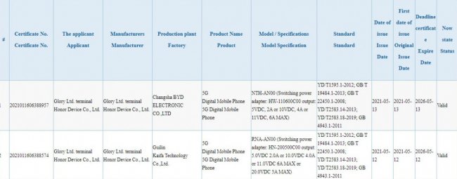 Итак, в списке есть две сертифицированные модели. Ожидается, что NTH-AN00 — это базовый Honor 50, а NRA-AN00 — старшая модель Honor 50 Pro+. И если емкость аккумуляторов пока неизвестна, то со скоростью зарядки у новинок точно проблем не будет — смартфоны получат в комплекте зарядные устройства мощностью 66 и 100 Вт соответственно.