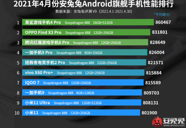 Весь ТОП — за Snapdragon 888: AnTuTu назвал десятку самых мощных смартфонов апреля - «Смартфоны»