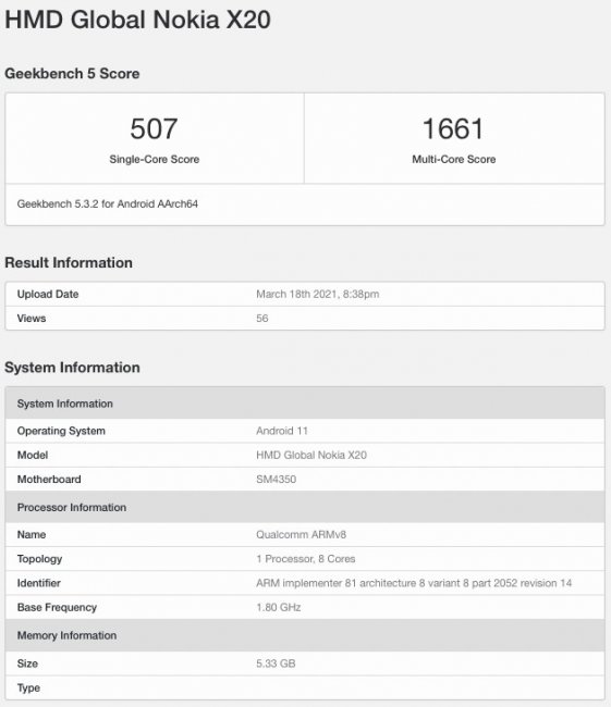 Бюджетный 5G-смартфон Nokia X20 появился в Geekbench с чипом Snapdragon 480 на борту - «Смартфоны»