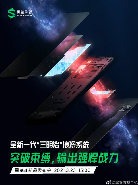 На днях стало известно, что новый игровой смартфон Black Shark 4 дебютирует на следующей неделе, 23 марта. Теперь же на странице Black Shark Weibo опубликовали короткий тизер и рекламные постеры, раскрывающие некоторые подробности об устройстве.
