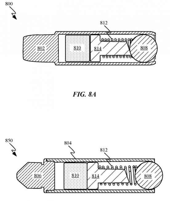 Патент, поданный в Управление США по патентам и товарным знакам, описывает трехконтактное зарядное устройство «MagSafe», аналогичное тем, которые используются в старых компьютерах MacBook. Похоже, Apple обсуждает несколько различных конструкций контактов, так как они отличаются на изображениях.