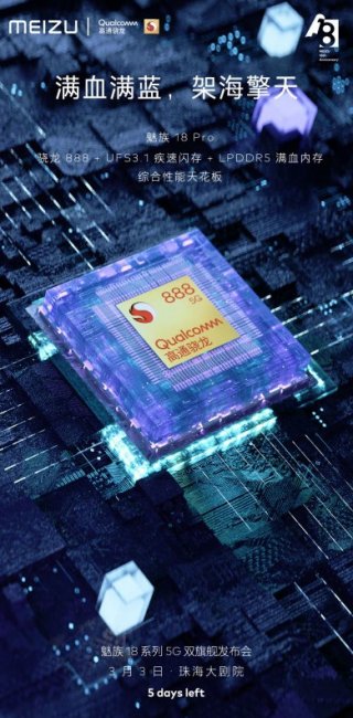 Кроме того, подтверждено, что Meizu 18 Pro получит топовый процессор Snapdragon 888, оперативную память типа LPDDR5 и внутренний накопитель UFS 3.1. Ожидается, что у Meizu 18 будет другой чип — Snapdragon 870.