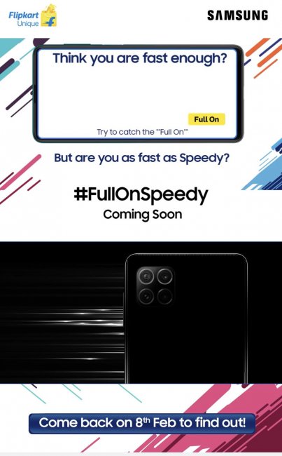 Хоть название новинки в рекламном тизере и не указано, ожидается, что это будет Galaxy F62, о котором мы уже неоднократно слышали. На это намекает и хештег #FullOnSpeedy, который инсайдеры использовали при описании Galaxy F62.