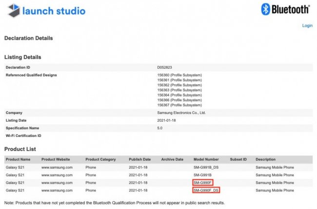 Напомним, все три модели семейства Galaxy S21, в отличие от предшественников, поставляются исключительно с возможностью подключения 5G (mmWave или менее 6 ГГц в зависимости от региона). Но новая сертификация Bluetooth SIG намекает на существование и 4G-версии.