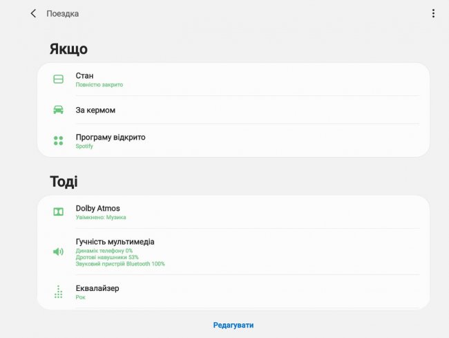 Еще один сценарий — поездка в машине. Обычно, я открываю дисплей полностью, срою маршрут на карте, потом закрываю смартфон и подключаю его через кабель к мультимедийной системе автомобиля, где запускается Android Auto. В моем сценарии еще запускается Spotify, Dolby Atmos переводится в режим музыки, эквалайзер устанавливается в режим Рок. Громкость Bluetooth-сигнала устанавливается на максимум, если мне придется принять звонок по громкой связи автомобиля. Конечно, Spotify в Android Auto способен запуститься и сам, но вместо него можно выбрать, например, Google Podcast, то есть именно я решаю как и что будет выполняться в моем сценарии. Со стороны это может выглядеть не то магией, не то фантастикой. Хотя речь всего лишь идет о новых технологиях, дающих новые возможности.
