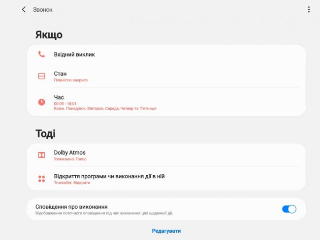Еще один сценарий — входящий звонок во время работы. За работой смартфон лежит рядом с ноутбуком в закрытом состсоянии. Если приходит звонок, то Dolby Atmos переключается в режим голоса, запускается звонилка, которую не нужно будет потом вызывать дополнительно, чтобы посмотреть на вызов.