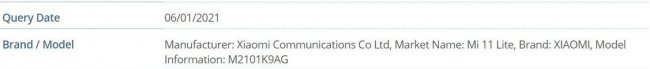 Смартфон с номером M2101K9AG уже прошел сертификацию Федеральной комиссии по связи США (Federal Communications Commission, FCC). Ведомство подтверждает его название — Xiaomi Mi 11 Lite, а также некоторые характеристики.