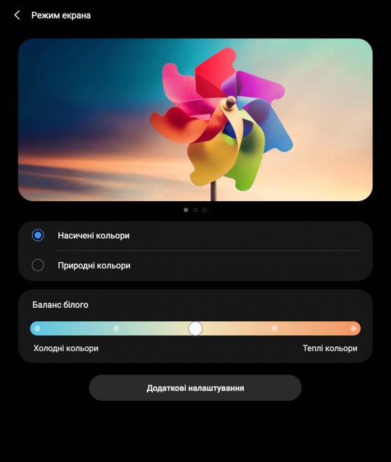 В режиме насыщенной цветности характер дисплея проявляется еще сильнее — синий и зеленый еще больше выходят за рамки цветового охвата sRGB, цветовая температура еще выше, а синяя составляющая поднимается со 120% до 130%. Как видим, ситуация с OLED-экранами стабильно повторяется: пользователям нравятся яркие цвета, более насыщенные, чем в реальной жизни (все фотографии кажутся более насыщенными, чем они есть на самом деле). И все, кто способен увидеть на глаз чрезмерную синеву, ее смогут увидеть. Для них, собственно, и предназначена настройка, включающая, при желании, фильтр синего цвета.
