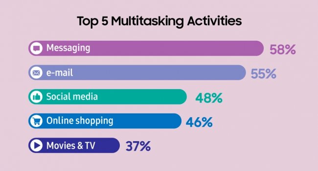 Согласно исследования, проведенного этим летом Samsung в США и Южной Корее (в нем приняло участие 1000 человек, пользующихся смартфонов в возрасте от 18 до 64 лет, и планирующих купить смартфон со сгибающимся экраном в течение следующих 12 месяцев), 98% респондентов заявили о том, что смартфон является основным устройством для них. 76% опрошенных предпочитают иметь одно компьютерное устройство вместо нескольких. 78% опрошенных, относящихся к миллениалам и зумерам (то есть примерно от 18 до 30 лет) заявили об использовании смартфона для многозадачности. 74% уже говорят об использовании смартфона для работы даже дома (особенно сейчас, во время самоизоляции).