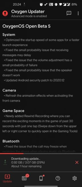 OxygenOS Open Beta 5 уже начали распространять по воздуху для всех участников программы бета-тестирования. Если, вдруг, OTA у вас ещё нет, то прошивку можно скачать через приложение Oxygen Updater.