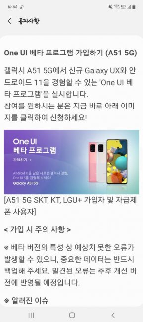 Производитель объявил на корейском форуме о запуске программы бета-тестирования новой системы на смартфоне Galaxy A51 5G. Первую сборку для аппарата должны выпустить уже в ближайшее время. Стабильный релиз запланирован на марта, но есть вероятность, что Galaxy A51 5G, как и несколько других смартфонов компании, обновится раньше обещанного срока.
