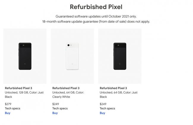 Google прекратил продажи Pixel 3 в марте 2020 года, но сейчас аппарат снова появился на официальном сайте компании.