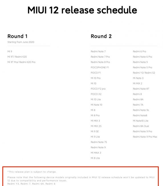 Редакторы портала Piunikaweb заметили, что китайский производитель обновил список устройств, которые поддерживают MIUI 12. К сожалению, теперь в нём нет вышеперечисленных моделей смартфонов.