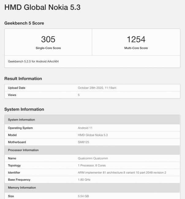 Им может стать бюджетный смартфон Nokia 5.3. По крайне мере, на это намекает отчёт теста производительности Geekbench. В нём заметили аппарат c предустановленной версией ОС Android 11. Следовательно, разработчики HMD Global уже тестируют новое ПО для смартфона. Его точно выпустят до конца этого года. Также прошивку в этом году должны получить модели Nokia 8.3 5G, Nokia 8.1 и Nokia 2.2. Другие смартфоны компания планирует обновить уже в 2021 году.