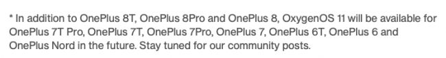 Итак, согласно официальному сообщению на форуме производителя, Android 11 получат OnePlus 8T, OnePlus 7T Pro, OnePlus 7T, OnePlus 7 Pro, OnePlus 7, OnePlus 6T, OnePlus 6 и OnePlus Nord. OnePlus 8T будет поставляться с новой ОС из коробки, а все остальные устройства планируют обновить в ближайшем будущем. К сожалению, точные сроки выхода прошивки компания пока не сообщает.