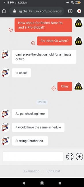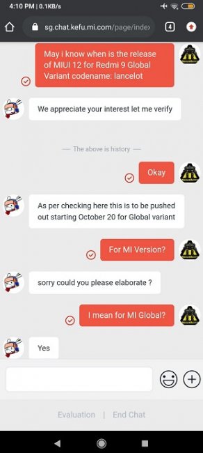 И хоть Xiaomi не делала никаких официальных заявлений об обновлении, дату выпуска MIUI 12 подтвердили в результате разговора между пользователем и представителем службы поддержки Xiaomi UK. Здесь пообещали, что развертывание обновления для Redmi 9, Redmi Note 9S и Redmi Note 9 Pro начнется 20 октября.