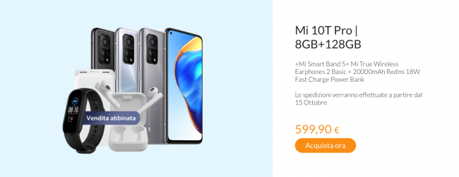 Если же заказывать модификацию Xiaomi Mi 10T Pro со 128 ГБ ПЗУ за 599 евро или обычный Xiaomi Mi 10T с 6/128 ГБ памяти за 499 евро, то можно получить смарт-браслет Xiaomi Mi Band 5, TWS-наушники Xiaomi Mi True Wireless Earphones 2 Basic и переносной аккумулятор Redmi 18W Fast Charge Power Bank с ёмкостью в 20 000 мАч.