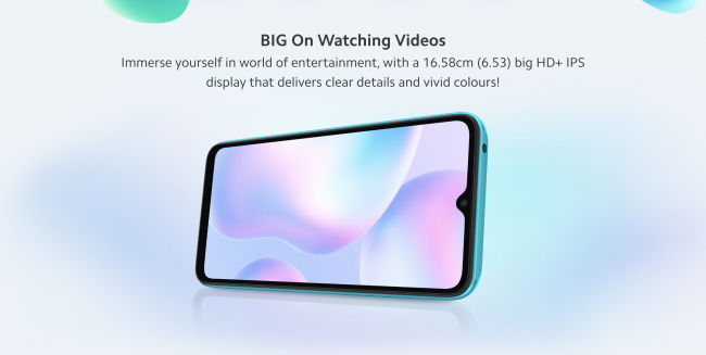 Аппарат оказался почти полной копией Redmi 9A. Из отличий устройства можно выделить лишь увеличенной количество памяти. У смартфона установлено 4 ГБ оперативной памяти типа LPDDR4x и есть два варианта накопителя: 64 ГБ или 128 ГБ. Для сравнения, Redmi 9A продаётся только в модификациях 2/32 ГБ или 3/32 ГБ.
