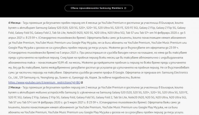 На сайте нет отдельной страницы для новинки, зато смартфон упоминается в описании рекламной акции YouTube Premium, причем дважды. В результате мы знаем точное название — Galaxy S20 Fan Edition, а также о существовании обычной и 5G-версии.