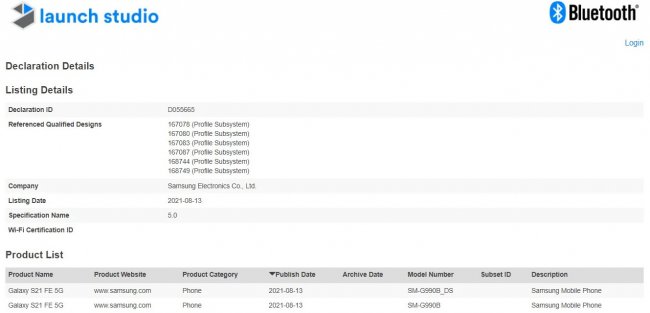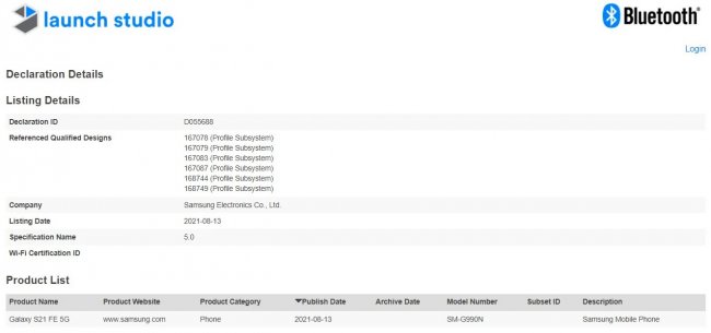 11 августа на презентации Galaxy Unpacked компания Samsung так и не представила новый доступный флагман Galaxy S21 FE. Но, похоже, смартфон уже готов к официальному анонсу — на днях он прошел сертификацию Bluetooth SIG.