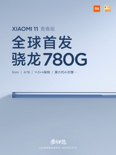 На одном из рекламных постеров указана дата 29 марта, а также название гаджета — Mi 11 Youth Edition. Так смартфон будет называться в Китае, а на международном рынке это будет Mi 11 Lite 5G.