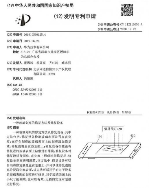 Патент, принятый и опубликованный 22 декабря, описывает «способ и оборудование для удаления царапин на стекле». По сути, это технология, позволяющая быстро и безболезненно (в этом случае — без больших трат) избавиться от царапин на дисплее и стеклянной задней панели.