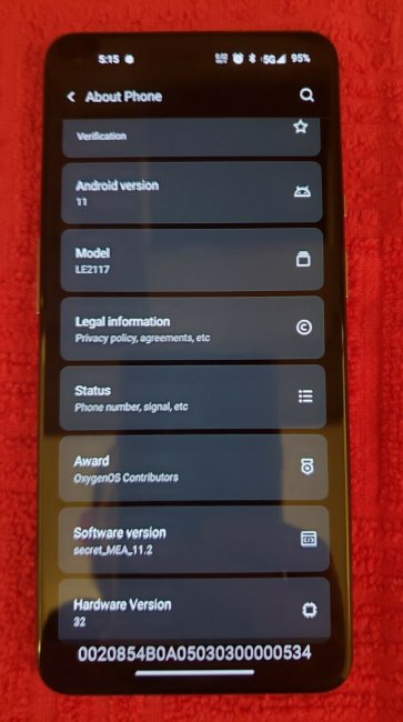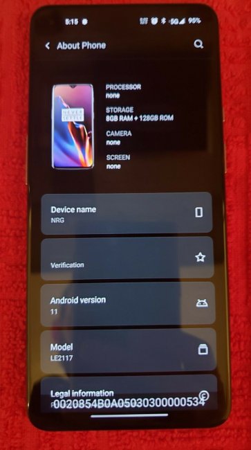 Также на экране можно рассмотреть некоторые характеристики: 8/128 ГБ памяти, OxygenOS 11 и номер модели LE2117.