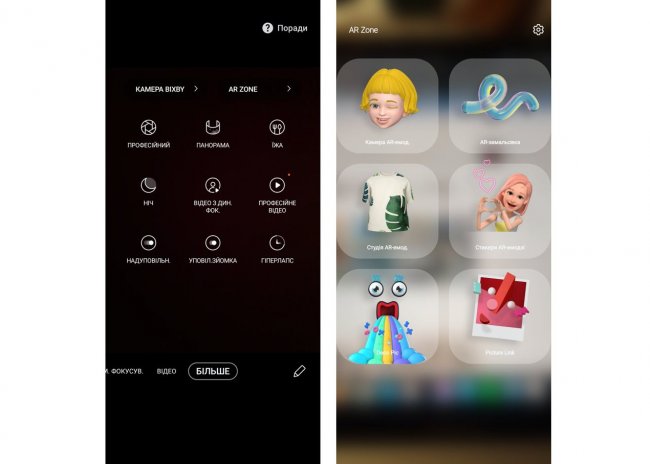 - приложения камеры в разделе AR Zone позволяют серьезно расширить возможности для забавных селфи;