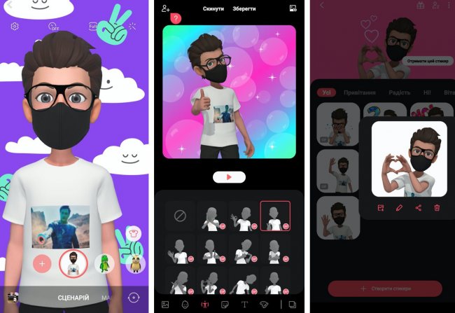 Камера AR-эмодзи тоже может использоваться для селфи, но предназначена для создания аватара или маски аватара по технологии дополненной реальности. Выбрав один из предложенных аватаров, можно записать видео и отправить друзьям.