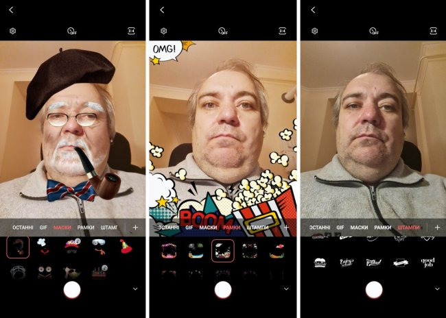 Но вернемся к приложению Deco Pic. У него три основных режима работы: маски, рамки и штампы. В принципе, все это можно получить и с помощью сторонних приложений — это правда, но зачем тратить время на поиск и выбор приложений, засорять память (а их очень много, и времени и памяти придется потратить немало), если в Galaxy S20 FE уже установлено такое приложение.