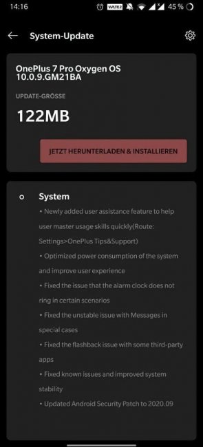 Текущее обновление вышло с номерами OxygenOS 10.3.6/10.0.9 для OnePlus 7/7 Pro и OxygenOS 10.0.14/10.3.6/10.0.12 для OnePlus 7T/7T Pro. В системе разработчики улучшили автономность и стабильность устройств, а также исправили множество ошибок. Например, работу будильника, некоторых сторонних приложений, а также проблему с отправкой сообщений.